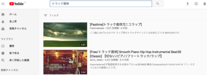 YouTubeで「トラック提供」や「フリートラック」と調べると、見つけることができます。